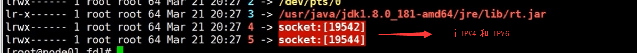 上面的0,1,2,分别对应着 输入流,输出流和错误流。在java里面我们流就是对象,而在linux系统中,流就是一个个的文件。后面的4,5 就对应着我们的socket通信,分别对应着ipv4 和 ipv6