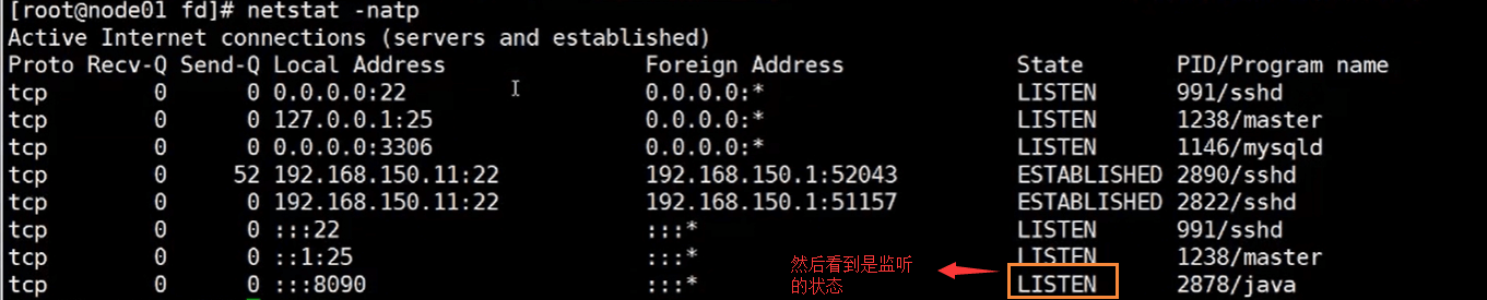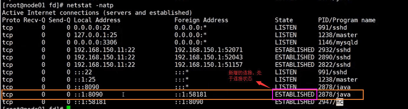 我们执行完后,通过netstat命令查看 ,发现多了个连接的状态